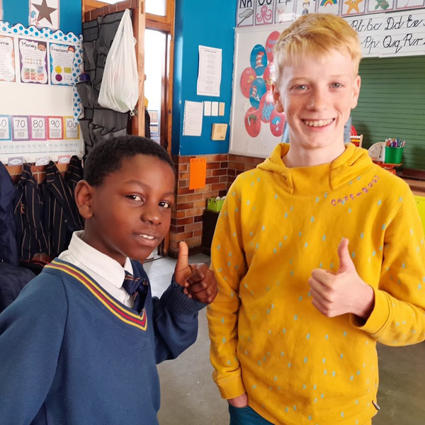 Die Grundschüler dort sind eigentlich alles Deutsch-Muttersprachler, das heißt, meistens spricht mindestens ein Elternteil deutsch. Ab der fünften Klasse nimmt die Schule auch englischsprachige Kinder auf, die Deutsch lernen wollen. Bei der Führung durch die Schule sahen wir erst, wie riesig sie ist. Sie erstreckt sich am Hang des Tafelbergs über 12 Etagen! Echt toller Ausblick über die Stadt.