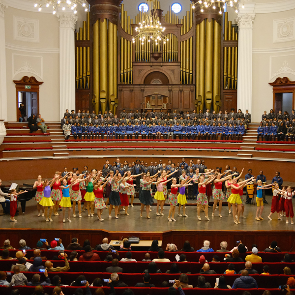 Heute ist es soweit, wir treffen nochmal die Kinder der Brooklynschule und werden bei einem Chorfestival in der City Hall auftreten. In diesem altehrwürdigen Gebäude mit einem imposanten Festsaal hat Nelson Mandela die erste Rede nach seiner Wahl als südafrikanischer Präsident vor 30 Jahren gehalten. Mandela ist ein Held – er hat gegen die Apartheid, also die Rassentrennung und Unterdrückung der nicht-weißen Menschen gekämpft und war dafür auch im Gefängnis eingesperrt. Wir hatten also großen Respekt vor diesem Auftritt und waren sehr dankbar, dass wir vor und nach den beeindruckenden Chören tanzen durften. Wir hatten schon vor unserer Reise einen Tanz einstudiert zum Lied Eneza Upendo – zu deutsch: Verbreite Liebe – das hatte uns der Chor der Brooklynschule vorab per Video geschickt. Das hatten wir ja schon am Dienstag in der Schule – ganz ohne vorherige Probe! – aufgeführt: und es hatte hervorragend geklappt. Heute geht es damit auf die große Bühne!