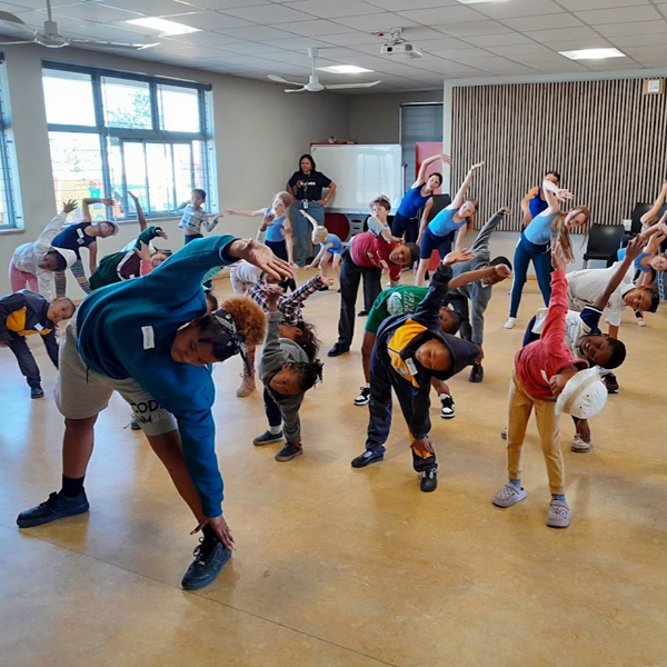 Heute treffen wir Kinder aus einem anderen Township. Uns wurde im Vorfeld gesagt, dass sie aus sehr schwierigen Verhältnissen kommen. Ihre Eltern haben zum Beispiel Probleme mit Drogen und können sich nicht gut um die Kinder kümmern. Wo sie leben, gibt es öfter Schießereien, und sie haben häufig nicht genug zu essen und gehen nicht regelmäßig zur Schule. Die Kinder tanzen seit kurzem in einer Freizeiteinrichtung unter der Leitung einer 17-Jährigen, die auf diese Weise selbst wieder den Weg zur Schule gefunden hat. Wir überwanden jegliche anfängliche Scheu, indem wir gemeinsam „Feuer, Wasser, Sturm“ spielten und dann deutsche Folklore tanzten, wobei ständig die Partner gewechselt wurden – da lernen wir uns gegenseitig kennen. Danach studierten wir gemeinsam einen Basketballtanz ein – ein großer Erfolg! Am Nachmittag zeigten wir für die Bewohner einer Seniorenresidenz sowie für Kinder mit Beeinträchtigung aus einem Kinderheim wieder unsere Tänze und was wir mit den Kindern vormittags einstudiert hatten. Dann die Kinder aus dem Township für uns tanzen zu sehen, hat nicht wenigen von uns Tränen in die Augen getrieben. Denn die Wahrheit ist, dass wir diesen Kindern zwar einen schönen Tag schenken konnten, aber leider auch keine Aussichten auf ein wirklich besseres Leben.